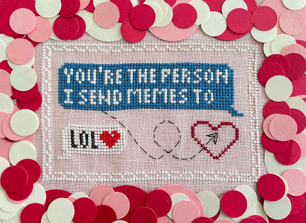 Model was stitched on 28 count Zweigart Blush linen, using two strands of floss over two strands of linen using full crosses and one strand of floss for backstitching. Charted in DMC.